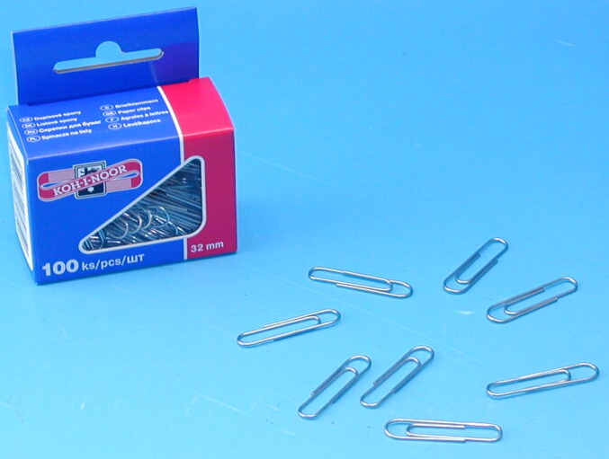 Dopisové spony 32 mm, průměr drátu 1,60 mm, délka 32 mm, šířka 6 mm.