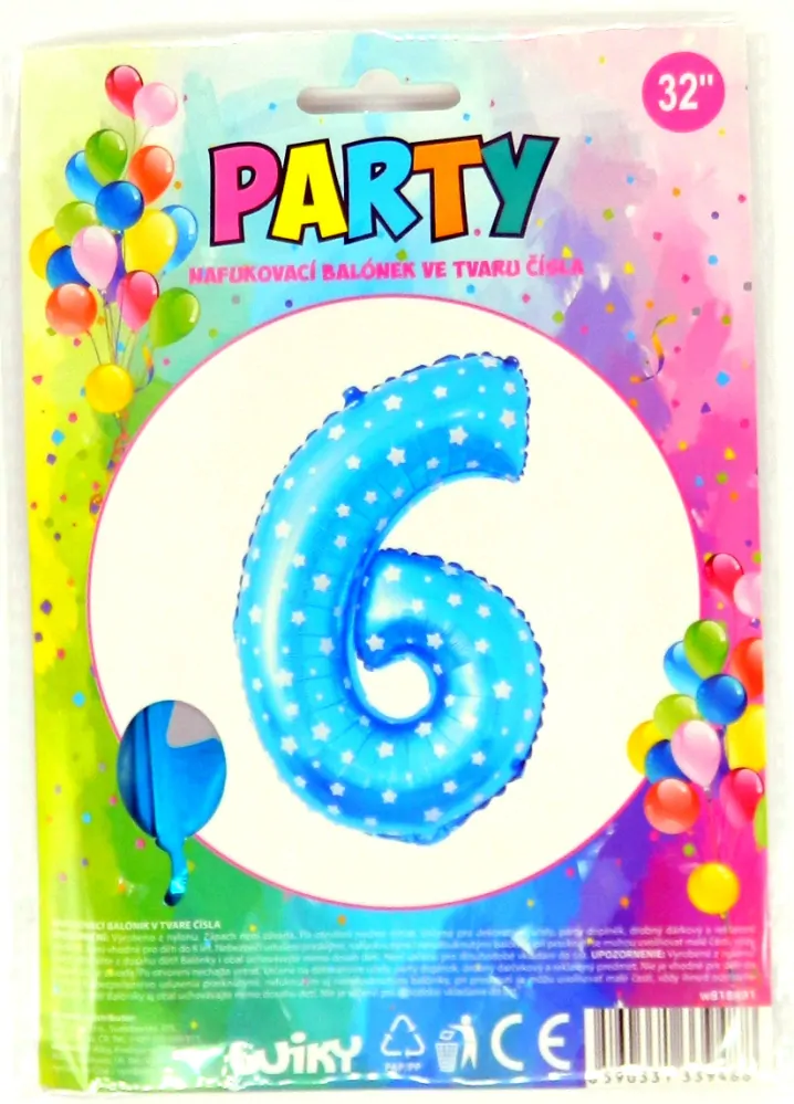 Balónek nafukovací číslo 6 modrýSkladem 1 ks21 Kč/ ks17,36 Kč bez DPH