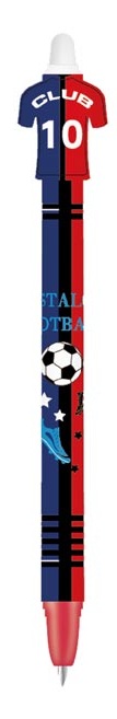 Gumovací kuličkové pero s fotbalovými motivy obsahuje speciální inkoust tzv. vymaž a přepiš, nebo vymaž a nech znovu objevit. Pokud uděláte chybu, stačí jen otočit pero a plastovou špičkou text vymažete. Špička zahřeje inkoust, ten zmizí a lze je znovu přepsat. Můžete si psát i tajné vzkazy, po vygumování stačí jen papír ochladit pod bod mrazu a text se znovu objeví.