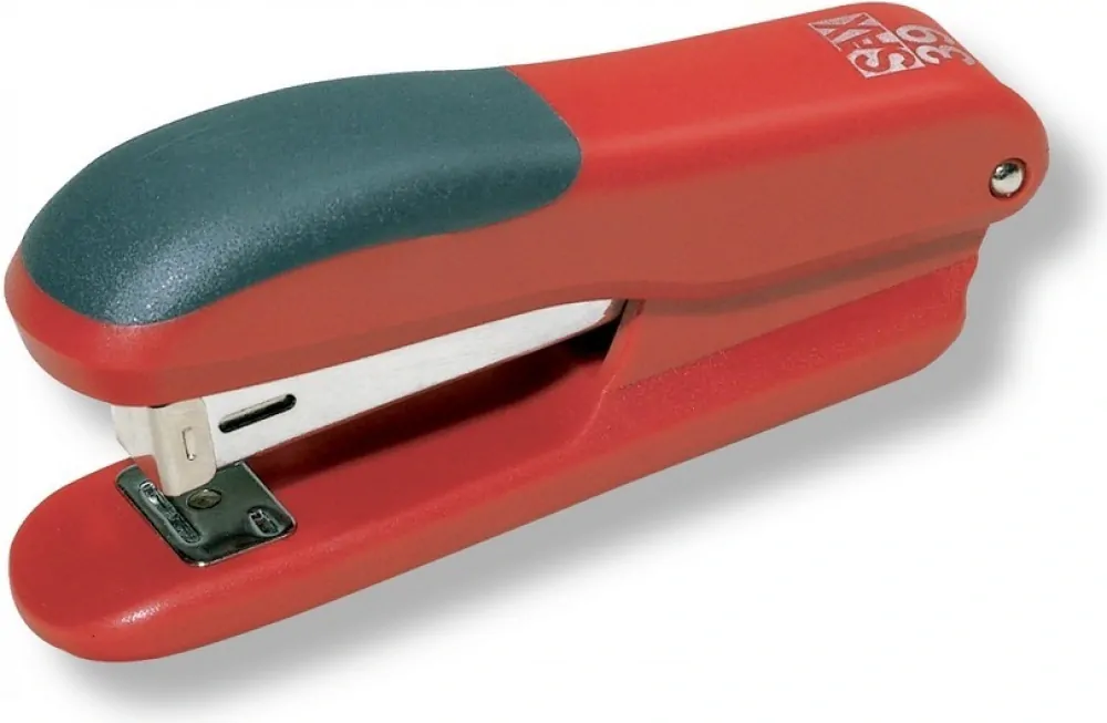 Moderní kovová sešívačka s vrchním plastovým pláštěm pro komfortní zacházení.