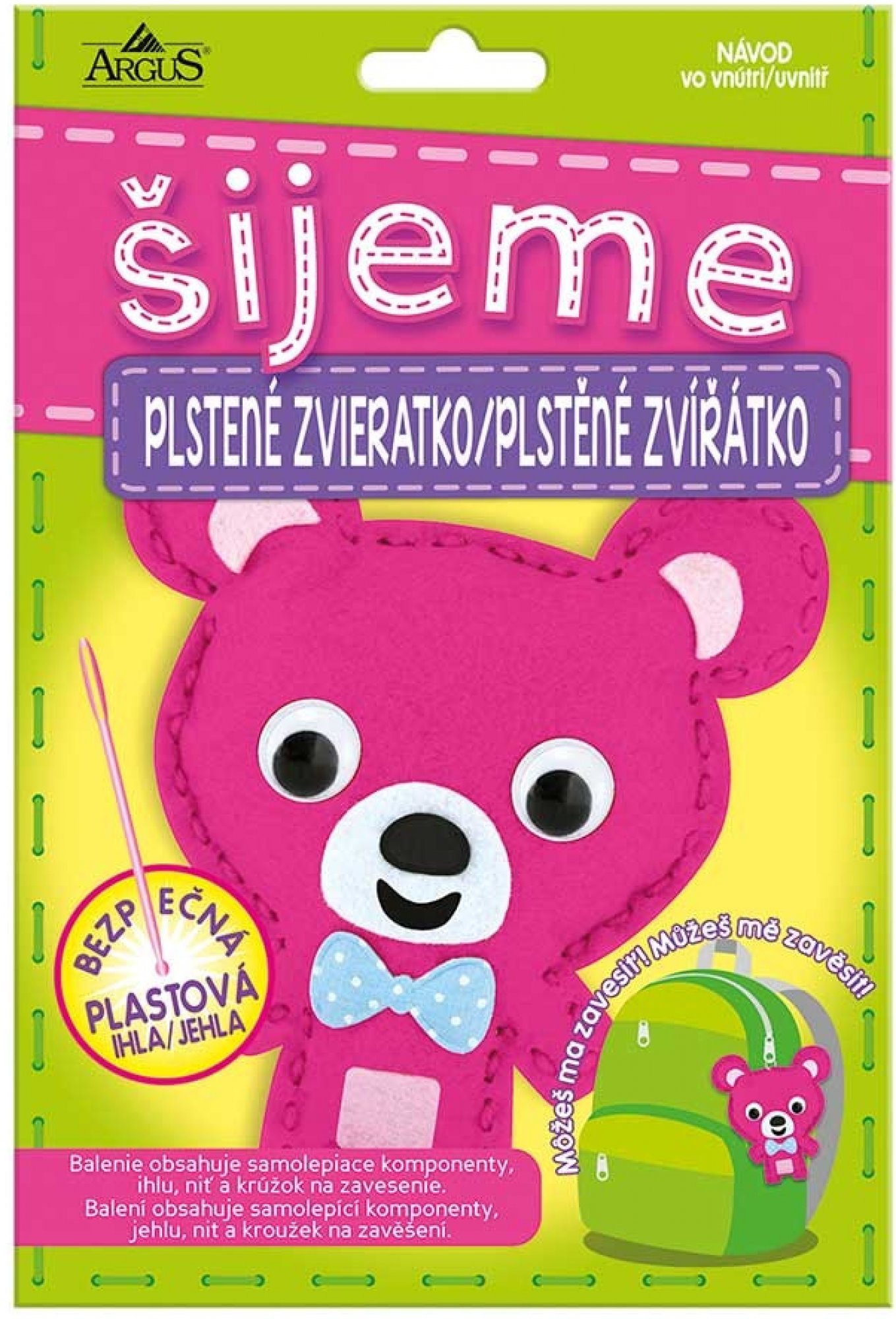 Také obsahuje očka, nit a kroužek na zavěšení figurky... například na školní tašku.